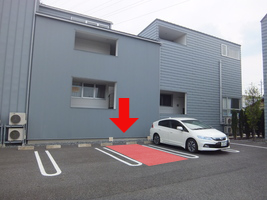 建物側、奥から3番目がサロンの駐車場です。※「心癒」駐車プレートのある所にお停め下さい※写真白い車は奥から2番目です。